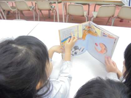 (中)「おにぎりに はいりたいやつ よっといで」を読書中。