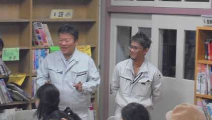 また、校舎増築工事に尽力くださっている施行業者の尼丁浩吉さん(右:株式会社 誠廣)と委託監理事務所の赤堀 博さん(左:株式会社 トシ建築事務所)がご挨拶と工事の進捗状況を報告してくださいました。今後とも、どうぞよろしくお願いします。