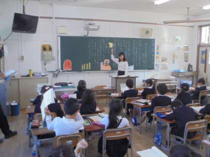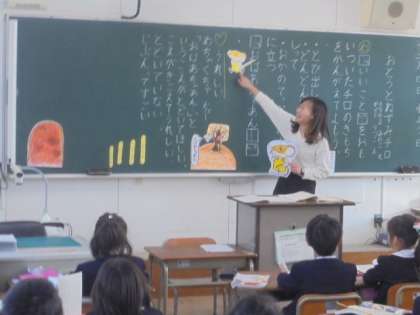 1時限目に、平井レナ先生の研究授業がありました。国語科の「おとうとねずみ チロ」の物語を学習しました。