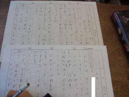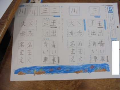 (上)書写で、「かくのながさとほうこう」を練習しています。
