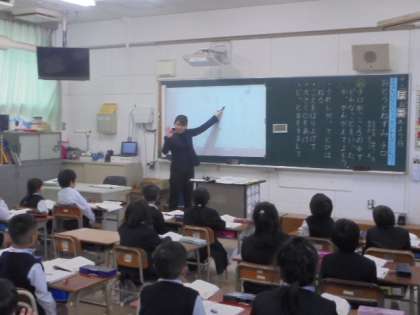1年2組 小林先生の国語科 研究授業です。