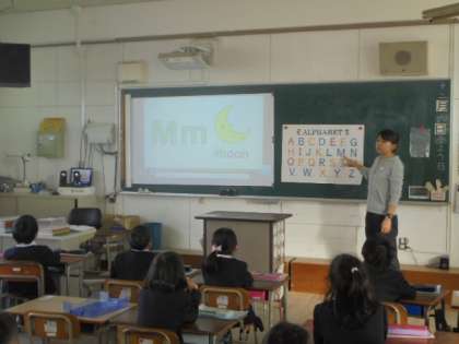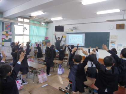 朝の短時間英語学習の時間です。1年生の様子です。