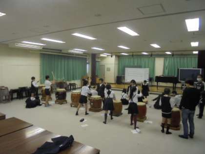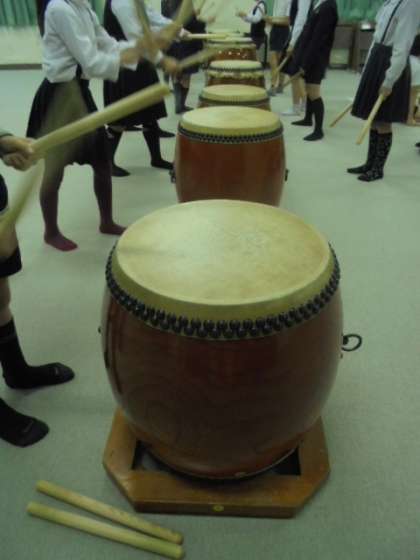 (中・下)人権教育として太鼓演奏に取り組んでいます。