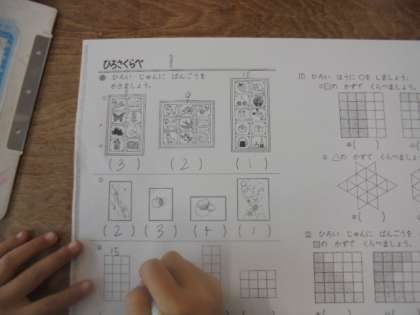 (上)算数プリントをがんばっています。