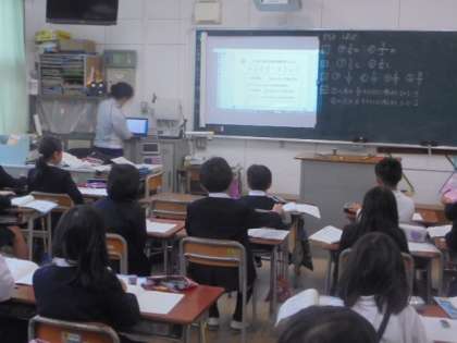 1・2組とも、書画カメラやデジタル教科書を使って、わかりやすく説明しています。