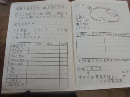 (上・中)理科「電気を通すもの、通さないもの」の学習です。