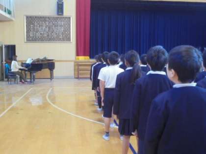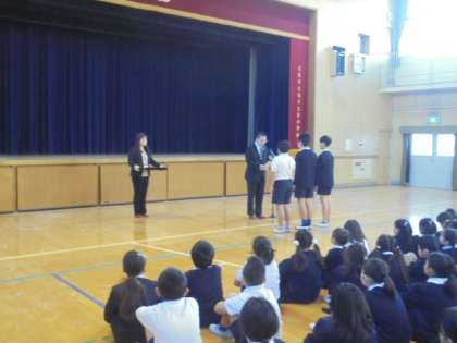 (下)税務署から、税の習字に入選した6年生への表彰です。