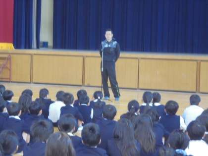 (中)生活指導部長の高嶋先生から、冬休みの安全なくらしについてお話