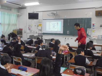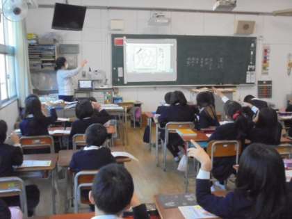 書画カメラを使って、新しい漢字をわかりやすく教えています。