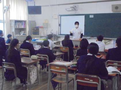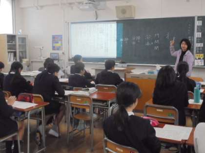 (上)社会科の授業です。