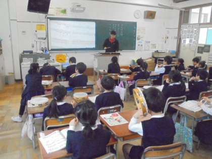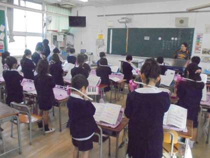 (上・下)音楽「こいぬの マーチ」合奏をしています。