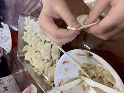 餡を包み始めると、「シュウマイみたい」「こんな形でいいの?」と個性的な形に仕上がりました。