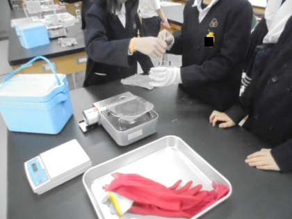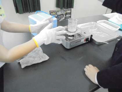 理科「ものがとけるきまりを みつけよう」の実験中