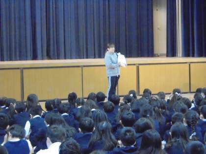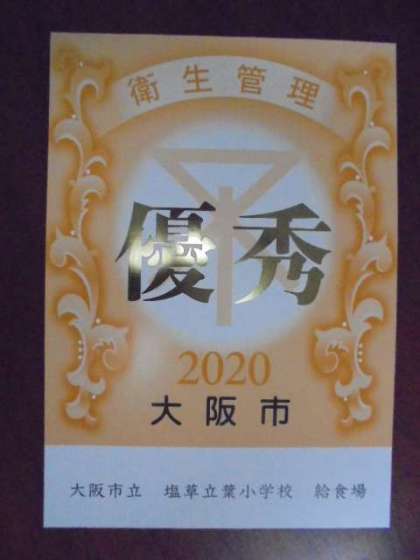 (上・中)安全でおいしい給食を提供してくださっていることに、大阪市より衛生管理が優秀と評価していただきました。嬉しいことです。全校朝会で、給食調理員の山野さんに優秀標章をお渡ししました。子どもたちからは、大きな拍手が起こりました。