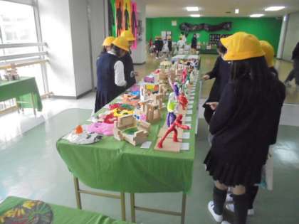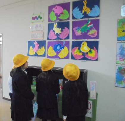 今日の午前中、難波支援学校に行きました。小学部のお友だちと一緒に、作品展を見学しました。色とりどり、素晴らしい作品に、感動しました。