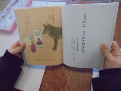 (下)「どうぶつ ことわざ えほん」を読んでいます。
