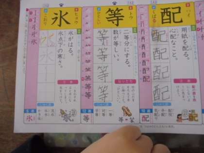 (上・中)「氷」の書き順を習っています。