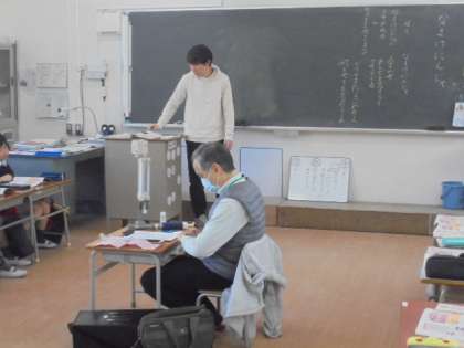 学校薬剤師の安部 力先生が、教室の空気環境を測ってくださっています。