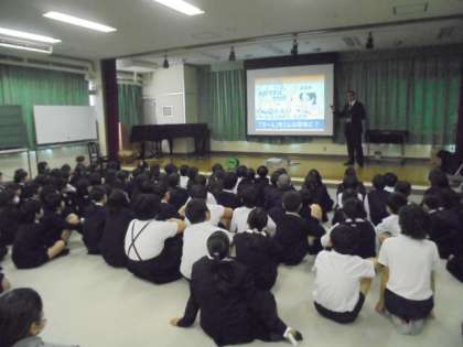 先日ご案内の通り、3年から6年の子どもたちに、スマホ・ケータイの安全な使い方について、講習をしました。講師は、KDDIより和泉さんがお越しくださいました。