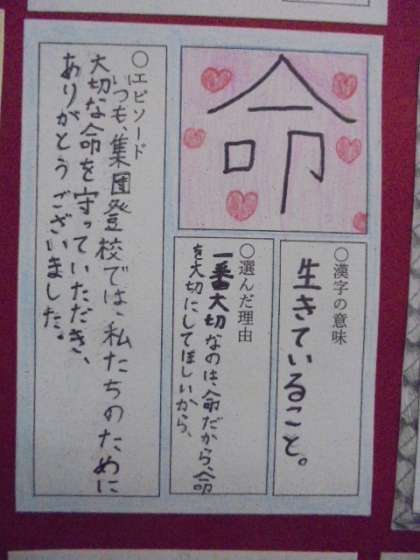 5年生からのメッセージです。ありがとうの気持ちを漢字で表しました。