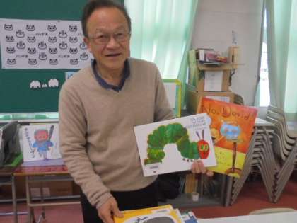 学校図書館補助員の小前先生が、新刊の整理をしてくださっています。