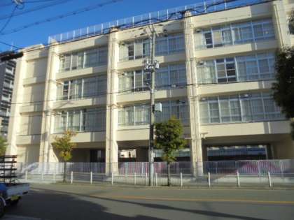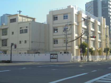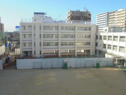 4階建ての新校舎が完成間近です。1階は、ピロティになっています。