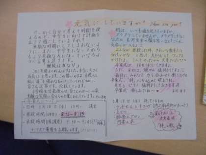 (上・中)6年生へのメッセージを作りました。卒業式の次第と合わせて、来週、お届けします。