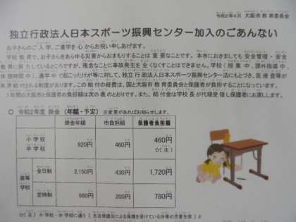 新しい課題などを取りに来てくださる際には、先日お渡しした「日本スポーツ振興センター加入同意書」をお持ちください。認印が必要です。用紙がない方は、学校でご記入、押印していただけます。区役所からの「就学通知書」が未提出の方は、あわせてお持ちください。ご協力のほど、よろしくお願いします。