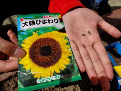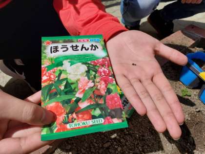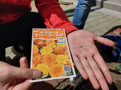 3年の先生方が、マリーゴールド、ほうせんか、ひまわりの種を植えてくださいました。優しく、温かい心がこもっています。