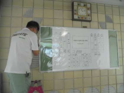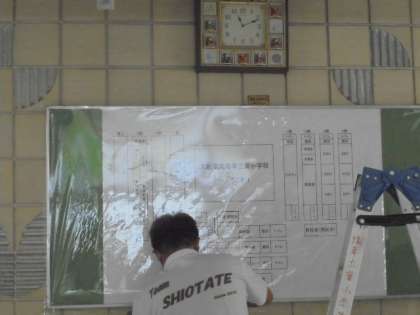 玄関を入って、すぐに正面の壁に掲示板を取り付けていただきました。