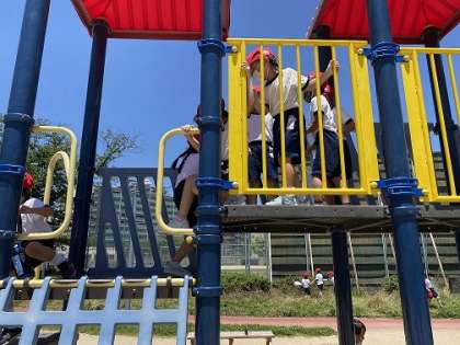 最後は、遊具で遊びました。自分たちでルールを作って順番を守り、思いっきり楽しんでいました。