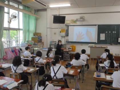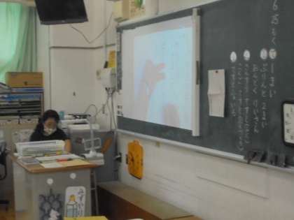 書画カメラでわかりやすく教えています。