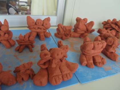 (中)シーサーを作っています。