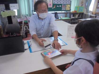 今日は、学校図書館補助員 小前先生が来てくださっています。