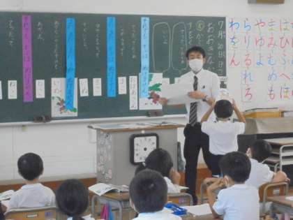 今日の4時限目、1年3組の教室で、中西 輝先生が国語科の研究授業をしました。たくさんの先生方が参観しています。