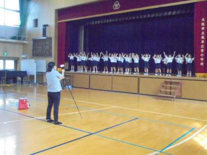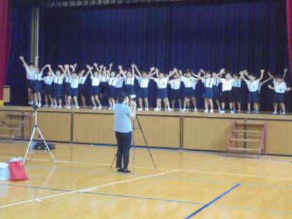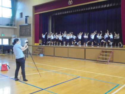 今年のナニワ区民まつりは、オンライン・動画配信により開催されます。今日の5時限目、1年生のかわいらしい「チェッコリダンス」の様子を撮影に来られました。⇒ナニワ区民まつりオンライン「ON祭」