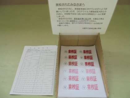 新型コロナウイルス感染症拡大防止のため、来校証を使いきりのシールにしました。使われる際は、お手数ですが、シールをはがして貼っていただき、お帰りの際は、処分してください。どうぞよろしくお願いします。