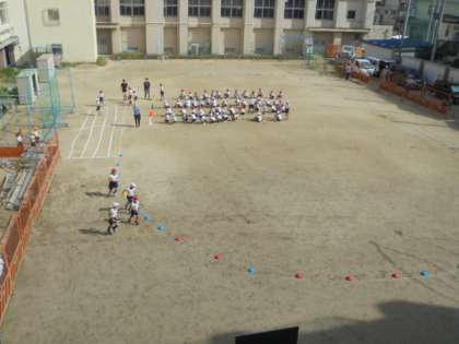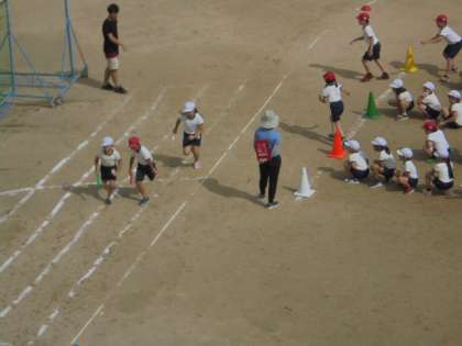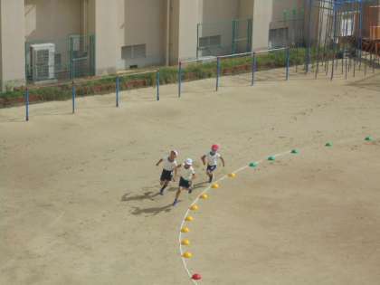 運動場で、リレー!