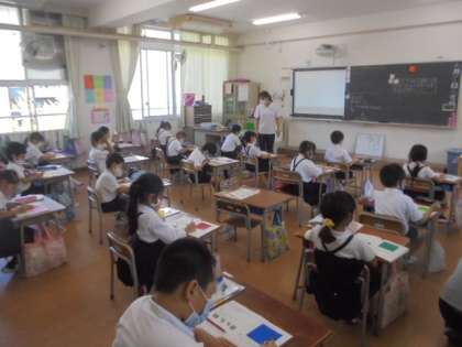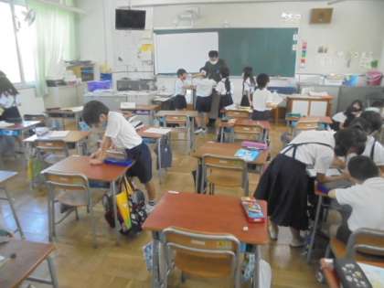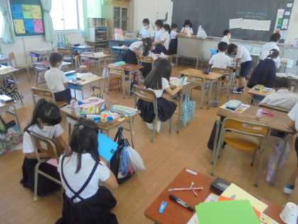 (上)国語「ニャーゴ」の紙芝居をタブレット端末で作っています。