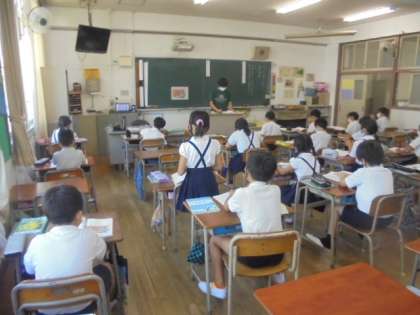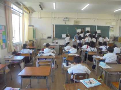 (下)道徳 子どもたちが、考えたことを黒板に書いています。