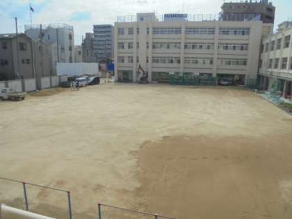 運動場の整備工事が始まりました。しばらくの間、運動場を使うことがでいません。今まで運動場にあったへいや倉庫などがなくなると、以前より広く感じます。