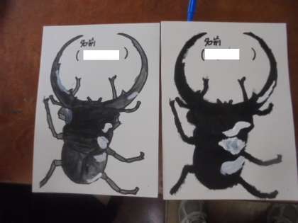 (上・中)クワガタムシを描いています。ものすごく上手です!