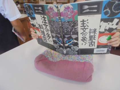 (上)図書室で「注文の多い 料理店」を読んでいます。