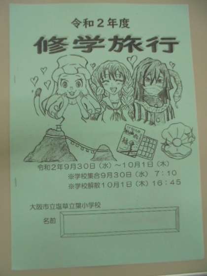 6年の修学旅行が近づきました。今日は、自宅で保管いただくための日程表と現地医療機関のリストを子どもたちに配りました。素敵な表紙のしおりも、できています。