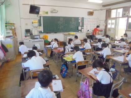 「でんしゃに7人のっています。3人のりました。4人おりました。