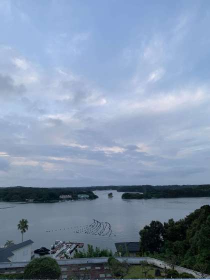 朝スッキリ起きて検温、布団の片付け、朝の用意をしています。これから賢島を散歩します。