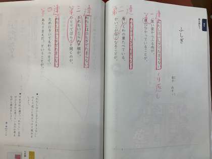 (下)教科書です。 (詩「ふしぎ」をもとに連詩を考えました。)