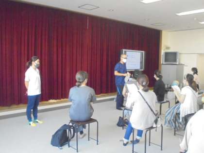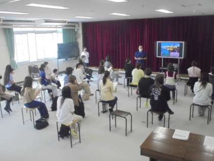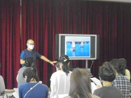 大阪府立青少年海洋センターでの活動内容やプログラム、持ち物などを説明しています。保護者の皆様、たくさんお集まりくださってありがとうございます。