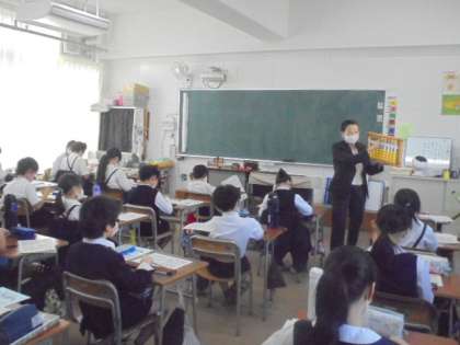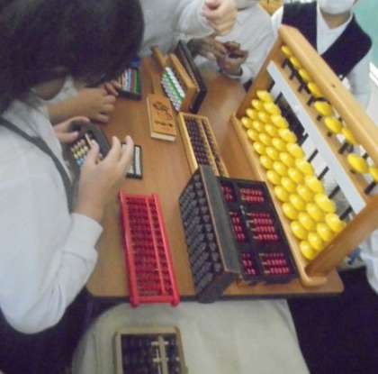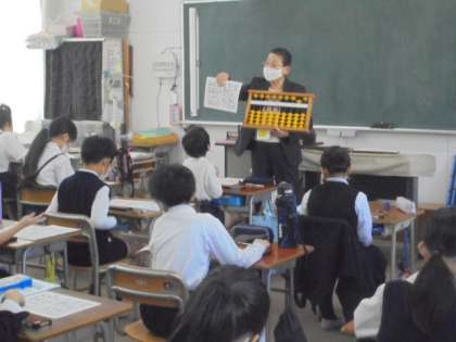 昨日の5・6時限目、4年生で珠算特別授業をしました。