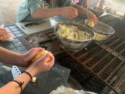 野外炊飯中です。